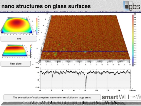 nano structures on glass surfaces lens filter plate The evaluation of optics requires nanometer resolution on large areas.