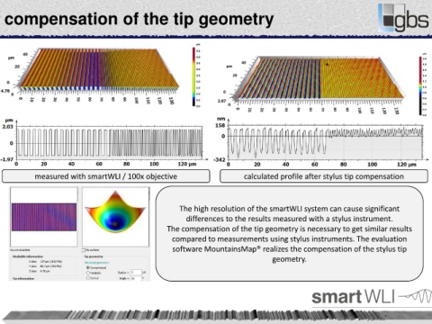 measured with smartWLI / 100x objective calculated profile after stylus tip compensation